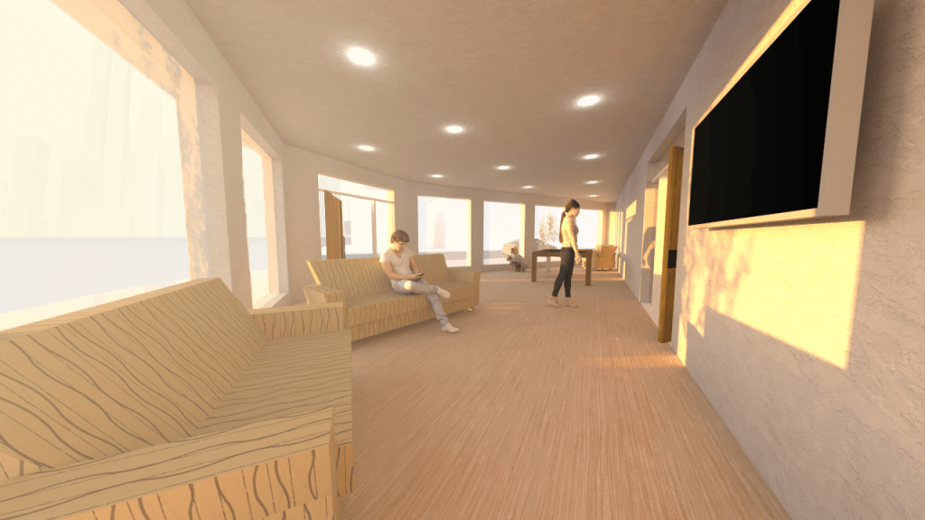 This project taught me a lot about people’s mental health and how space and architecture affects them. We often underestimate the importance of design, simple things like community and light have huge effects on people’s emotions and overal mental health. I believe all residential design should account for community and social spaces.