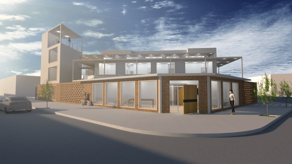 After studying the site location and the two intersecting streets, I gathered some design ideas and chose one that can fit best in this location so that it would fit in and seem as friendly as possible. Some of these choices include the building’s overall material and color, and the height of the building itself. The brick wall was chosen for its color and the sense of traditional design, and the height remained to 3 floors max.