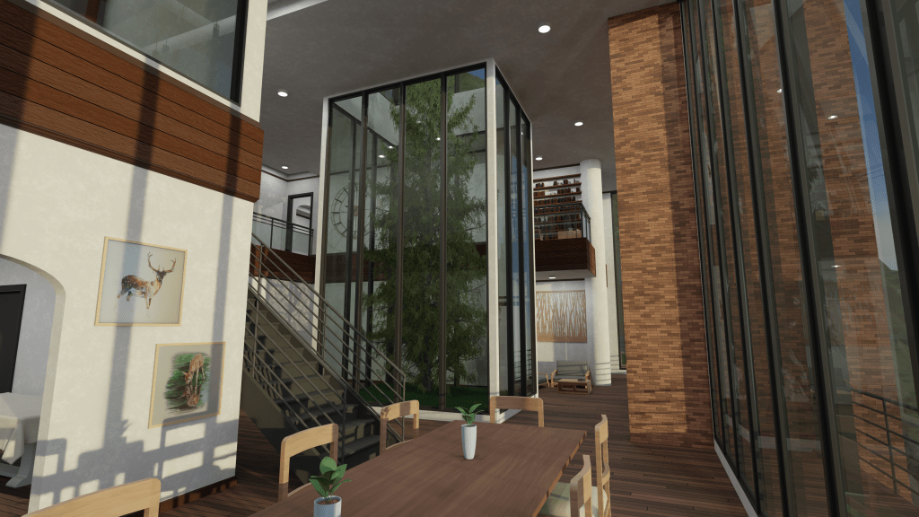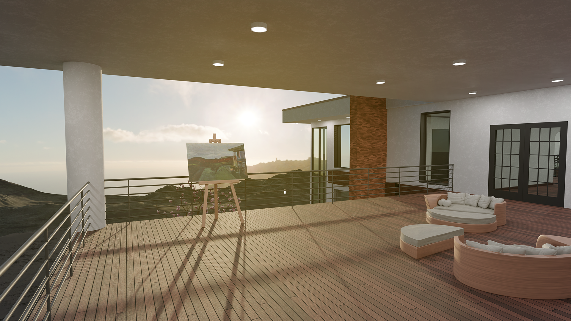 What is a home, but a feeling? I designed this house so that it feels comfortable, safe, and beautiful. Both social gatherings and privacy being priorities here, I’ve made this area perfect for parties, while all private areas are hidden.